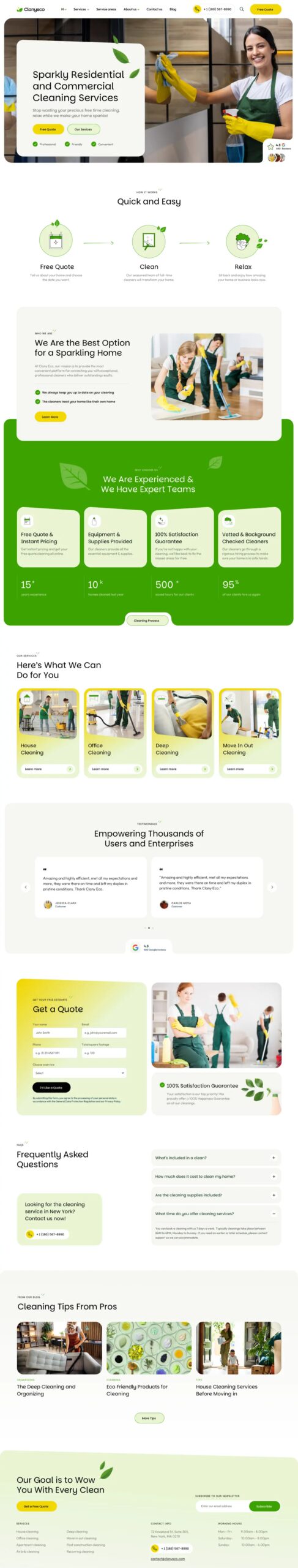 Built and suitable for residential and commercial cleaning services, janitorial companies, carpet and window cleaning businesses, maid services, and freelance cleaners looking to showcase their expertise.